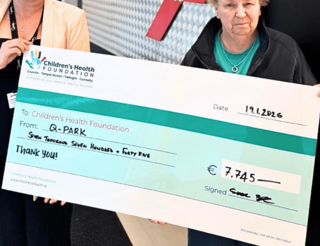 | Q-Park is delighted to announce a generous donation of €7,745 to Children’s Health Foundation Temple Street, marking another proud milestone in our long-standing partnership.